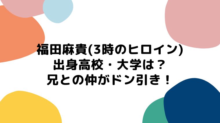福田麻貴(3時のヒロイン)の出身高校・大学は?兄との仲がドン引き!
