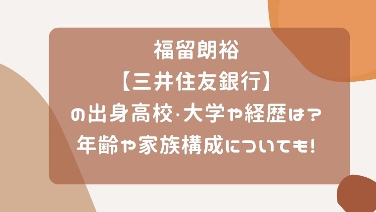 今回は、2023年4月に三井住友銀行の頭取に就任される福留朗裕さんについて「福留朗裕の出身高校・大学や経歴は?年齢や家族構成についても!」と題してまとめてみました。