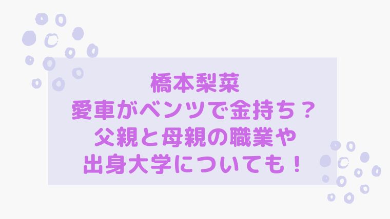 そこで今回は橋本梨菜さんの愛車がベンツなのか、父親や母親の職業などまとめてみました!