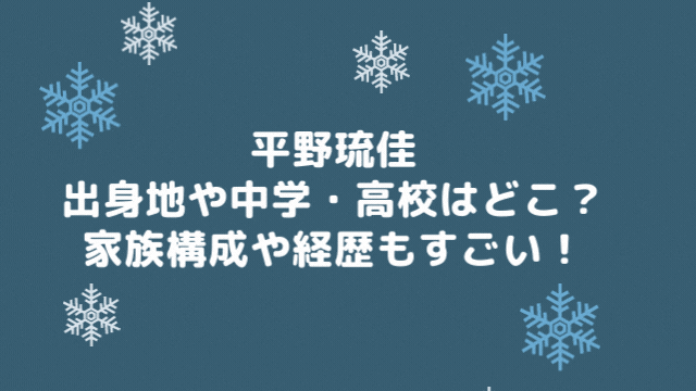 今回はスノーボードハーフパイプ日本代表の平野琉佳選手について「平野琉佳の出身地や中学・高校はどこ?家族構成や経歴もすごい!」と題してまとめてみました。