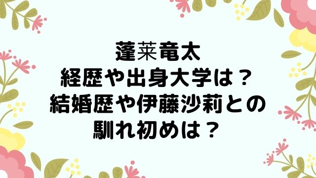 - 蓬莱竜太の経歴や出身大学は?