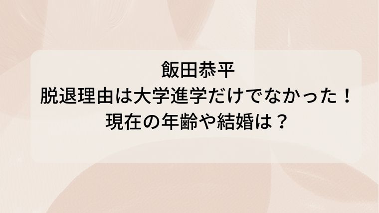 飯田恭平の脱退理由は大学進学だけでなかった!現在の年齢や結婚は?