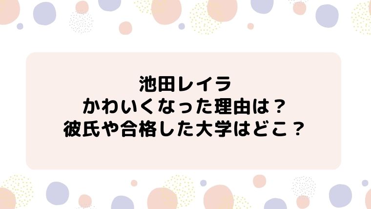 今回は、「池田レイラがかわいくなった理由は?彼氏や合格した大学はどこ?」と題しまして、池田レイラさんはどんな理由で垢抜けたのかなどについて調べてみました。