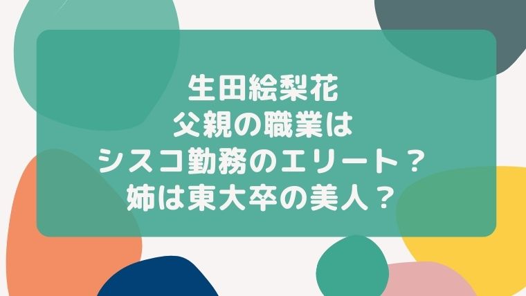 生田絵梨花さんの父親は、現在シスコシステムズ(Cisco)の役員として活躍するエリートサラリーマンということがわかりました。