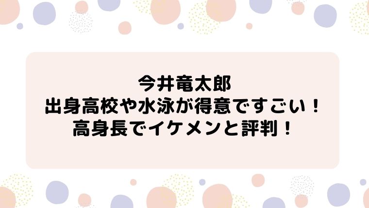 今回は、「今井竜太郎の出身高校や水泳が得意ですごい!高身長でイケメンと評判!」と題しまして、今井竜太郎さんのプロフィールなどをまとめてみました。
