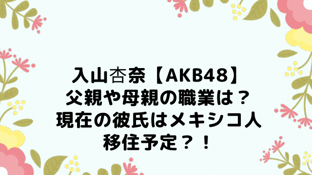 今回はAKB48を2022年3月に卒業すると発表した入山杏奈さんについて「入山杏奈の父親や母親の職業は?現在の彼氏はメキシコ人で移住予定?!」と題してまとめてみました。