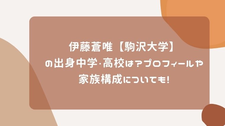 今回は、第99回箱根駅伝の6区を走った駒沢大学1年生の伊藤蒼唯選手について「伊藤蒼唯の出身中学・高校は?プロフィールや家族構成についても!」と題してまとめてみました。