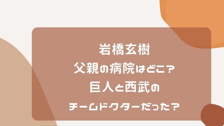 ということで、『岩橋玄樹の父親の病院はどこ?巨人と西武のチームドクターだった?』と題して、紹介していきたいと思います。