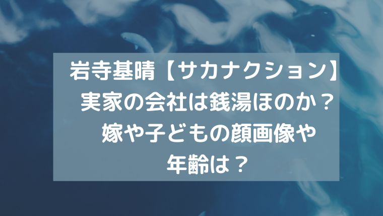 今回は人気ロックバンドのサカナクションのギター担当の岩寺基晴さんについて「岩寺基晴の実家の会社は銭湯ほのか?嫁や子どもの顔画像や年齢は?」と題してまとめてみました。