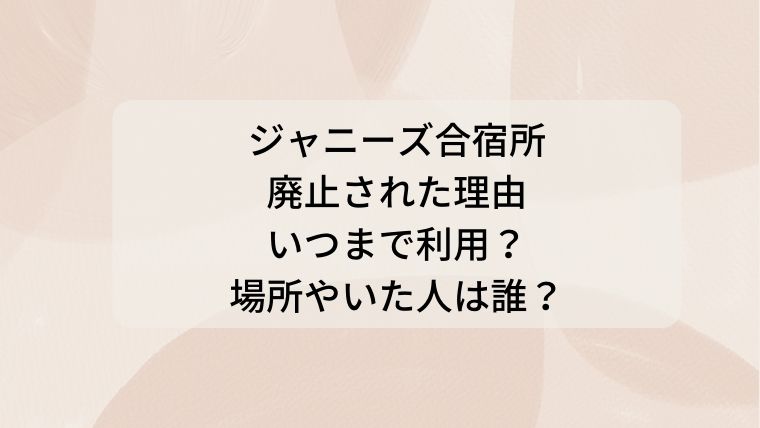 ジャニーズ合宿所が廃止された件については、近隣へ迷惑や防犯上の問題の理由で廃止されたようです。