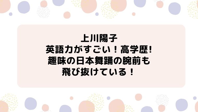 今回は、上川陽子議員の学歴や経歴、英語力、そして、日本舞踊の腕前についても調べて、ご紹介しました。