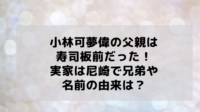 今回は2021年8月にル・マン24時間耐久レースに優勝した小林可夢偉選手について「小林可夢偉の父親は寿司板前だった!実家は尼崎で兄弟や名前の由来は?」と題して調べました。