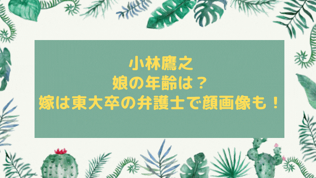 - 小林鷹之の嫁は東大卒の弁護士で顔画像も!