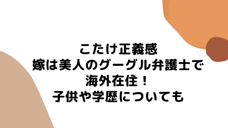 今回は、弁護士で芸人として活動しているこたけ正義感さんについて「こたけ正義感の嫁は美人のグーグル弁護士で海外在住!子供や学歴についても」と題してまとめてみました。