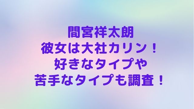 間宮祥太郎さんが好きなタイプと苦手なタイプ、彼女の大社カリンさんがどういった女性なのか、大社カリンさんと間宮祥太郎さんの馴れ初めなど、間宮祥太郎さんに関して気になる話題を調査しました!
