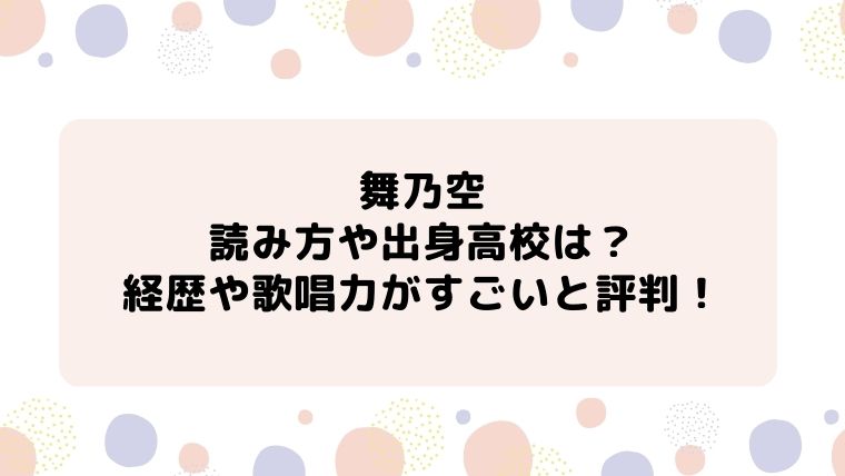 そこで今回は「舞乃空の読み方や出身高校は?経歴や歌唱力がすごい!」と題してまとめてみました。