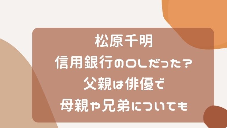 松原千明は信用銀行のOLだった?父親は俳優で母親や兄弟についても