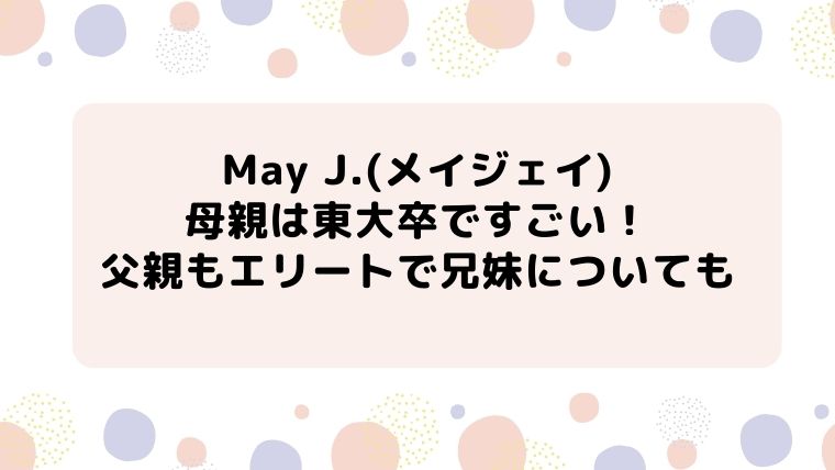 May J.(メイジェイ)の母親は東大卒ですごい!父親もエリートで兄弟についても