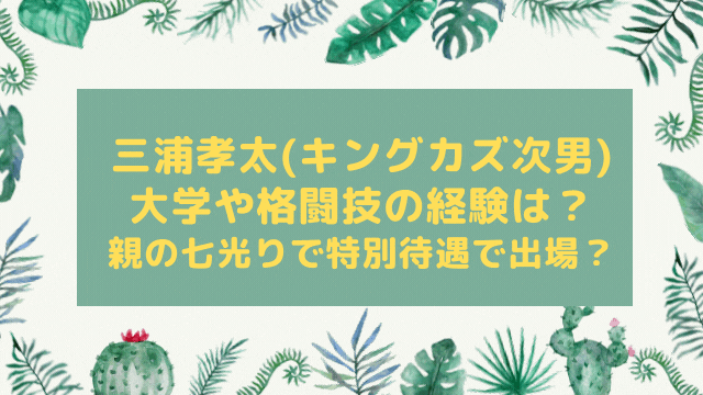 今回は三浦孝太さんのプロフィール・大学や格闘技の経験などを調べてみました!