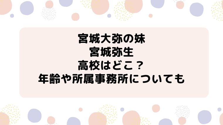 宮城大弥の妹・弥生さんは、先に述べましたように大手芸能事務所からオファーがあり、正式に芸能事務所に所属となったようです。