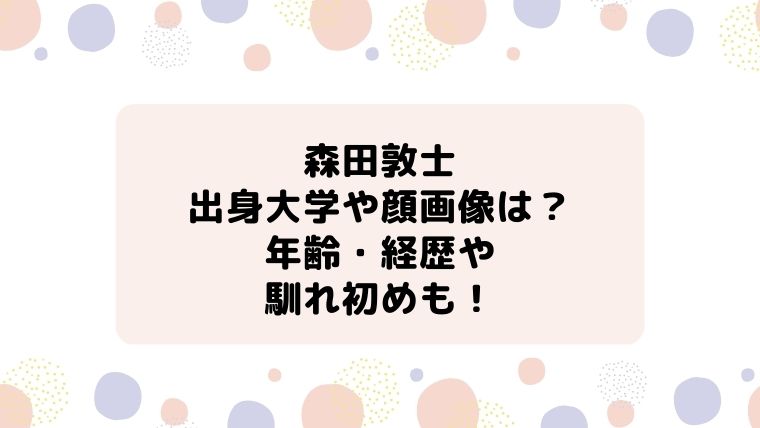 今回は、森田敦士さんの出身大学や年齢など調査してみました。