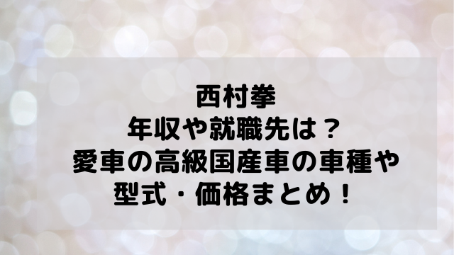 そこで今回は「西村拳の年収や就職先は?愛車の高級国産車の車種や型式・価格まとめ!」と題して紹介します!