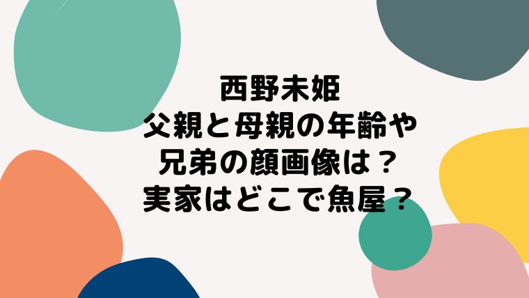 今回は、西野未姫さんの実家やご両親についても調べてみました。