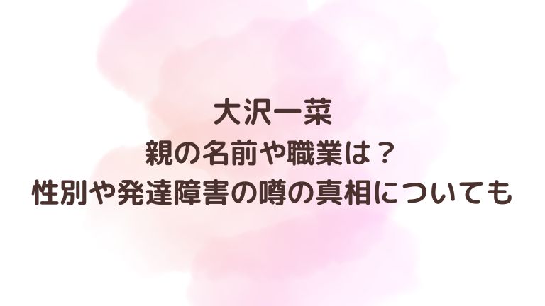 また、大沢一菜さんの性別や発達障害などの噂の真相も調べてみました。