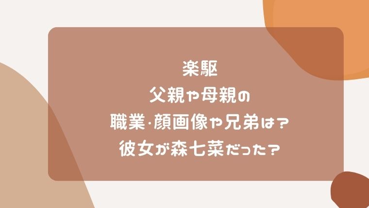 今回は、「楽駆の父親や母親の職業や兄弟は?彼女が森七菜だった?」と題しまして、まとめてみました。
