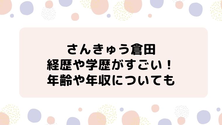 今回は「さんきゅう倉田の経歴や学歴がすごい!年齢や年収についても」と題しまして、さんきゅう倉田さんの学歴や経歴などについて調べてみました。