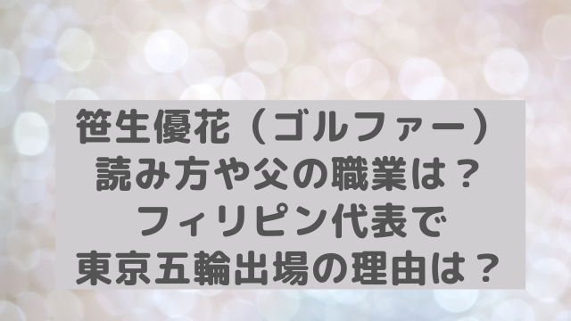 - 笹生優花選手の東京五輪出場はフィリピン代表?その理由は