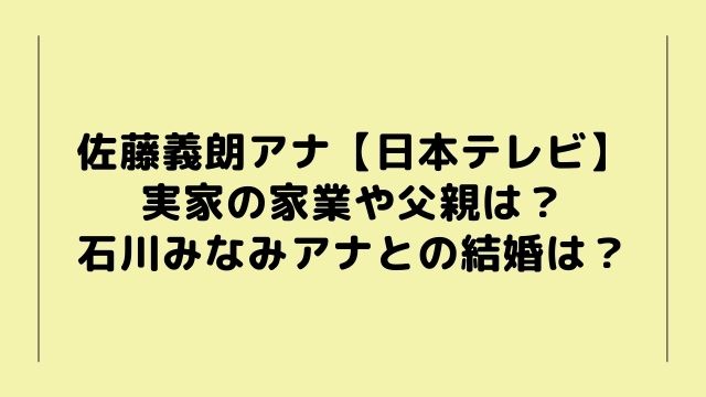 今回は日本テレビの佐藤義朗アナウンサーが5月末で退職することについて「佐藤義朗アナの実家の家業や父親は?石川みなみアナとの結婚も」と題してまとめてみました。