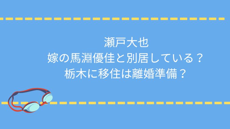 そんな瀬戸大也選手と嫁の馬淵優佳さんの別居の真相や馬淵優佳さんの栃木へ移住理由などを調べてみました。