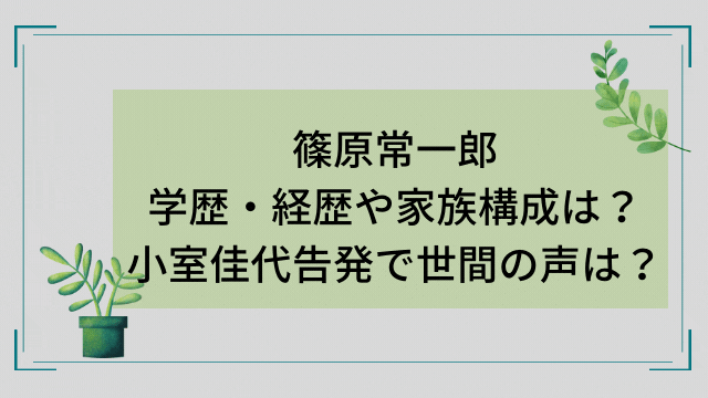 篠原常一郎の学歴・経歴や家族構成は?小室佳代告発で世間の声は?