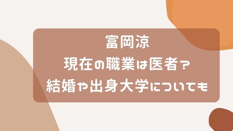 今回は、「富岡涼の現在の職業は医者?結婚や出身大学についても」をご紹介しました。