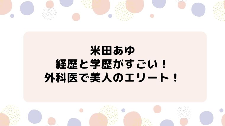 米田あゆの経歴と学歴がすごい!外科医の美人のエリート!
